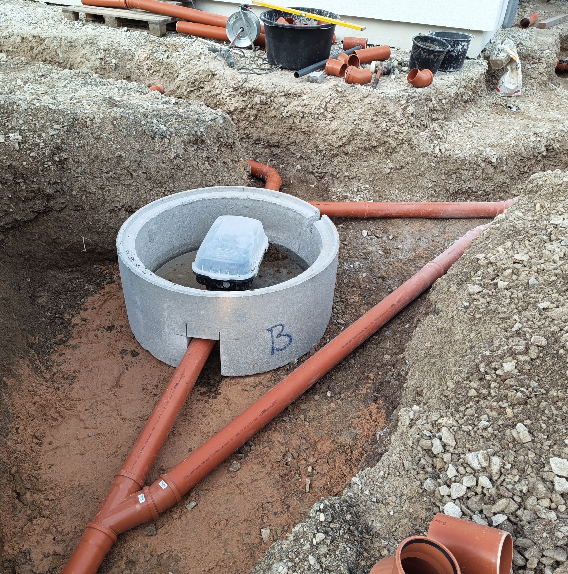 - Verlegung und Anschluss von Schmutz- und Regenwasserleitungen